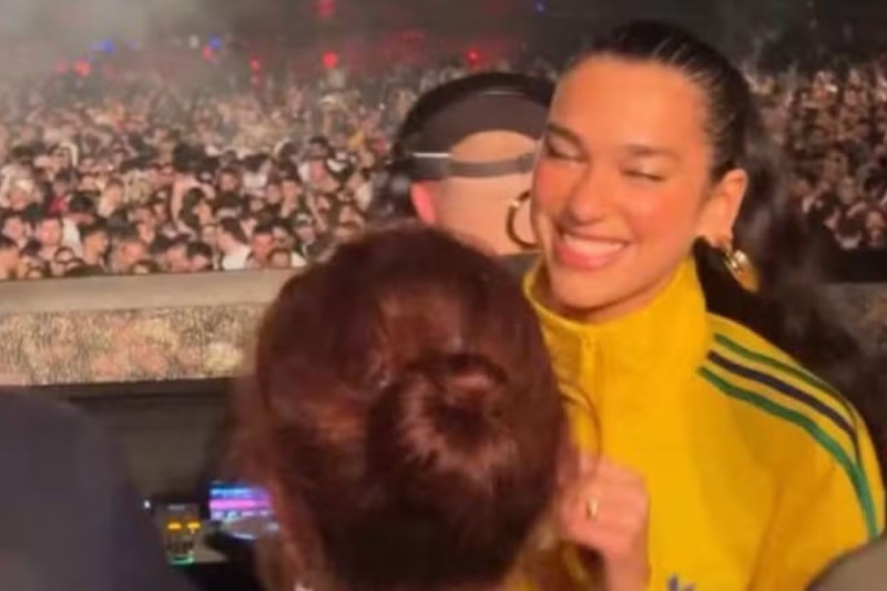 Outra postagem destacou a alegria de Dua Lipa e Bruna se divertindo juntas, acompanhadas pela legião de fãs que estavam por lá.